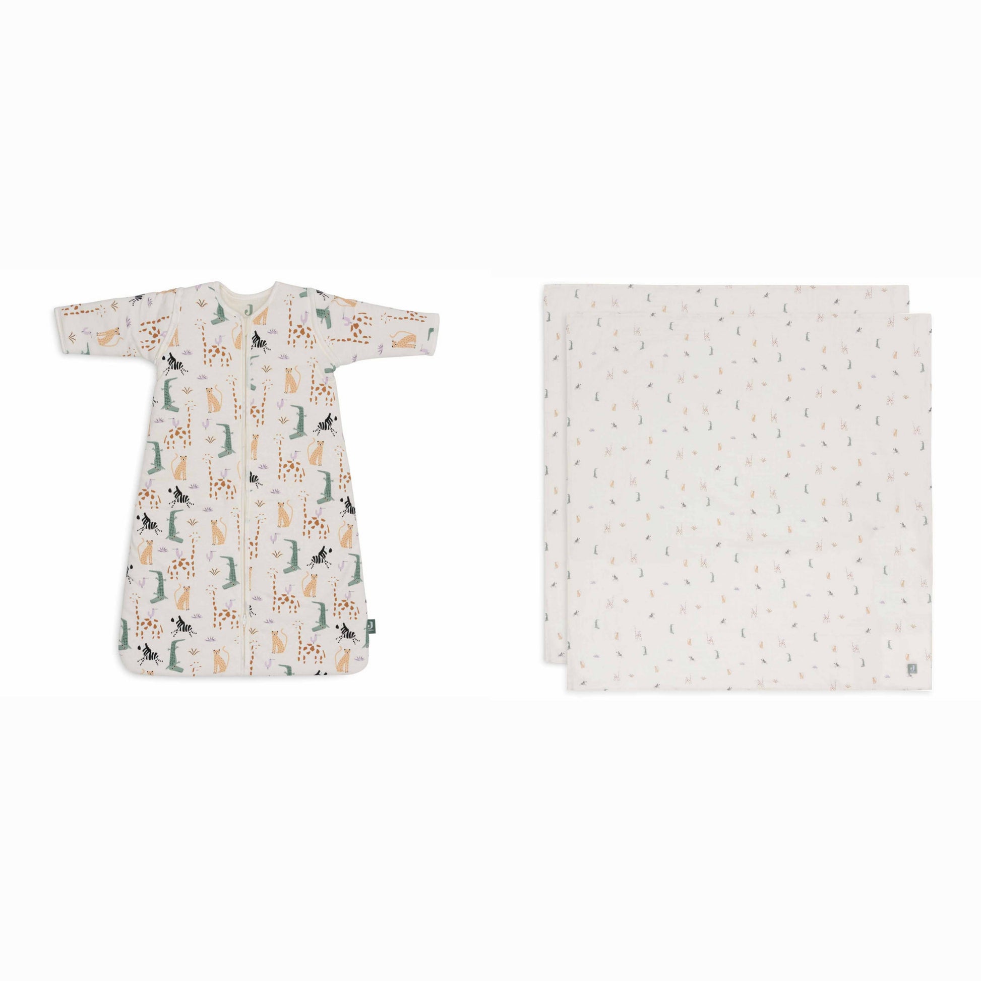 Maak het jezelf makkelijk met deze perfect op elkaar afgestemde Jungle Jambo babyset. Deze set bestaat uit een comfortabele baby slaapzak met afritsbare mouwen en een zachte hydrofiele doek in dezelfde Jungle Jambo print. Ideaal voor slapen én dagelijkse verzorgmomenten.