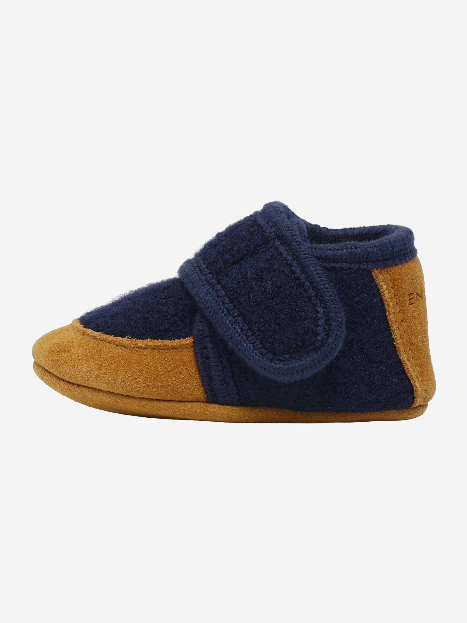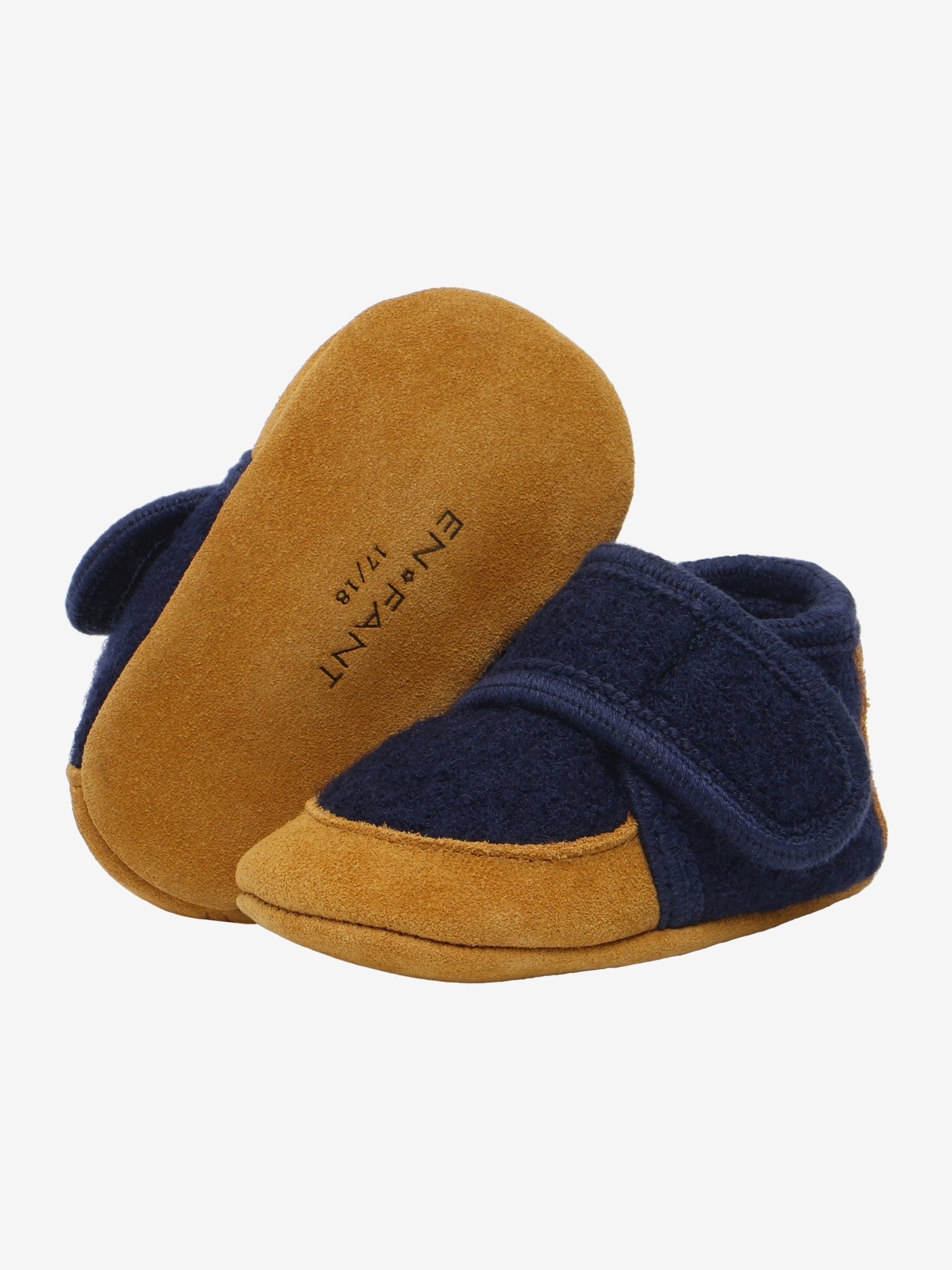 Heerlijk zachte babyslofjes van EN FANT, gemaakt van 100% wol. De slofjes hebben een omgeslagen boord bij de enkel voor een goede pasvorm en extra comfort. De zool is uitgevoerd in stevig suède, waardoor de slofjes duurzaam en slipvast zijn, ideaal als binnenschoentje. Dankzij de soepele materialen en fijne pasvorm zitten ze super comfortabel aan kleine voetjes. De slofjes zijn verkrijgbaar in de kleuren Sand Melange, Walnut, Bark en Navy. En in de maten 17/18, 19/20 en 21/22.