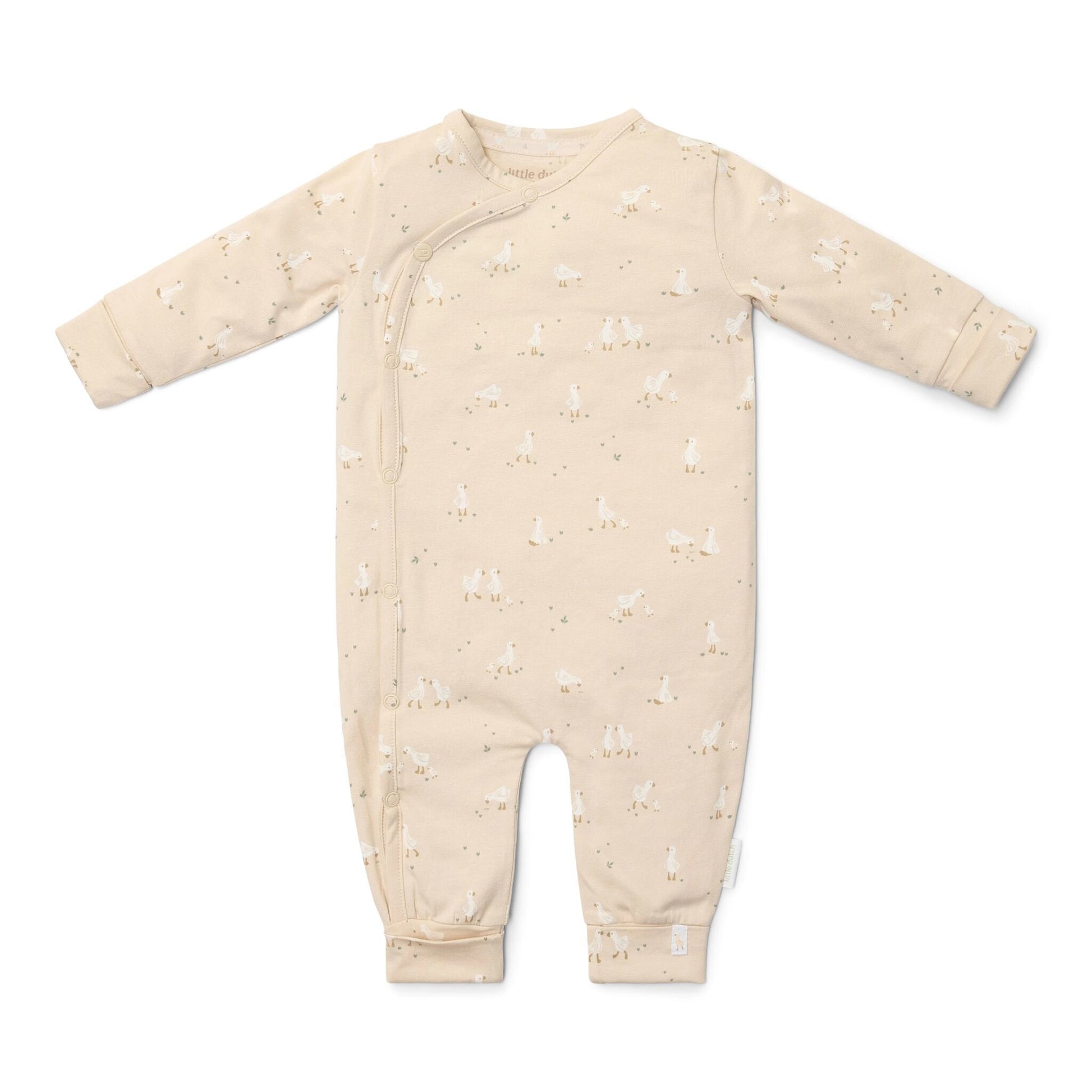 Dit schattige boxpakje in zandkleur met een speelse Little Goose print is een warme en knusse keuze voor je kleintje. Het overslagontwerp maakt aan- en uitkleden zo veel gemakkelijker en de omslag op de armen en benen zorgt ervoor dat het pakje nog even meegroeit met je kleintje. Het zachte biologische katoen is ideaal voor de gevoelige babyhuid. Verkrijgbaar in de maten 50 tot 74.