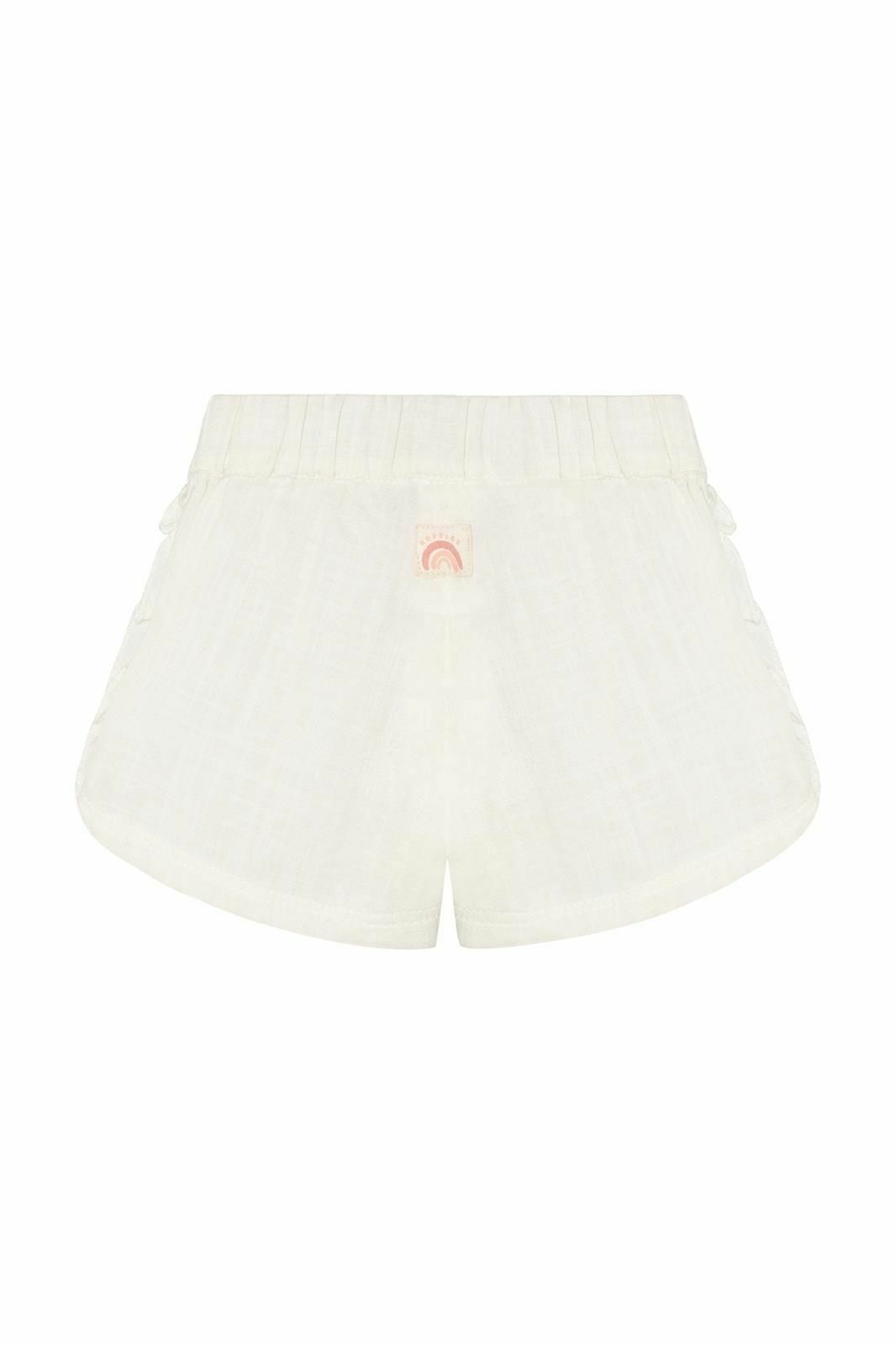Op zoek naar een speels shortje voor jouw kleintje? Deze meisjes short van Noppies biedt het ultieme zomercomfort. Gemaakt van double woven katoen, voelt het heerlijk zacht aan op de kwetsbare babyhuid en laat het de huid goed ademen op warme dagen. Het subtiele ruffle-detail langs de rand geeft een extra schattige touch. Perfect voor een dagje in de tuin, een wandeling door het park of een bezoekje aan opa en oma – dit shortje is voor elk zomermoment geschikt. De comfortabele fit geeft jouw kindje alle bewegingsvrijheid om te kruipen, rollen of de eerste stapjes te zetten. Dankzij het ontwerp zonder sluiting is aan- en uitdoen een fluitje van een cent. Handig bij het verschonen én prettig voor je kindje. Een echte musthave voor warme dagen. Voeg dit luchtige shortje vandaag nog toe aan de garderobe van je meisje!
